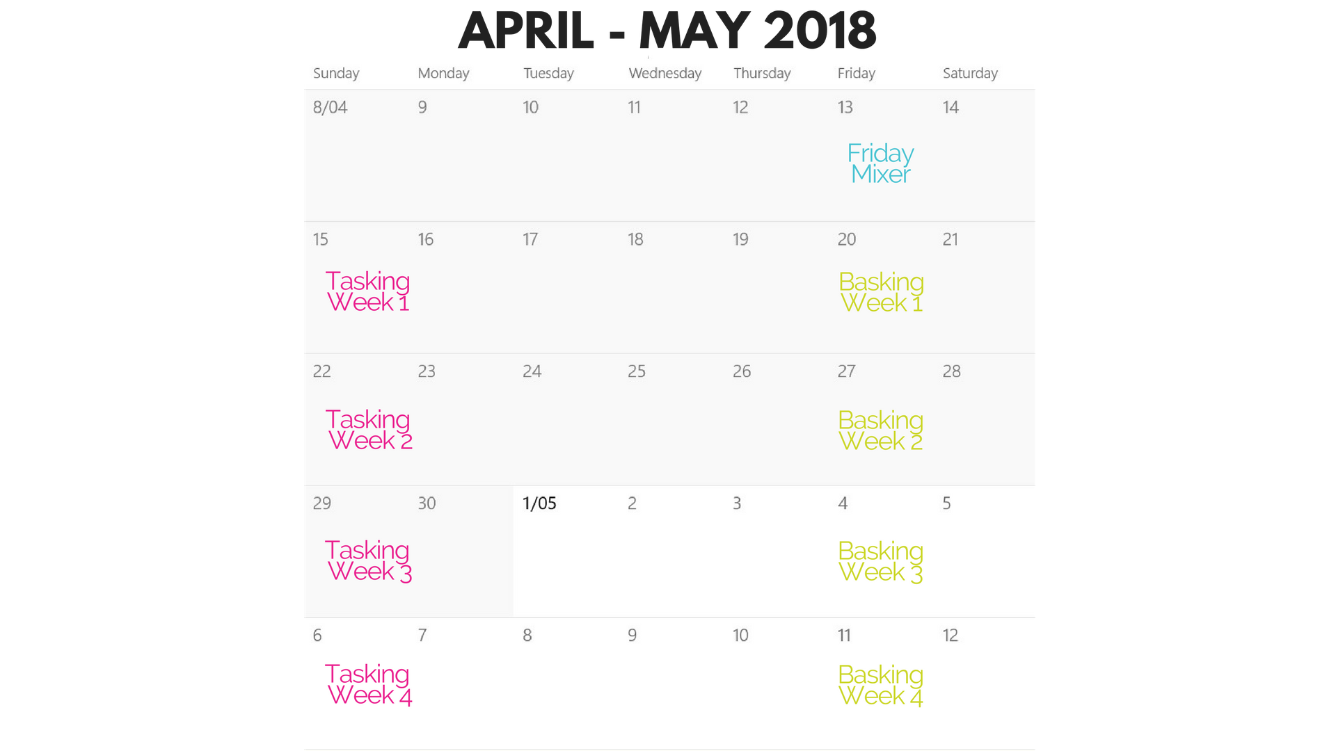 4. Each Sunday you will write your tasks for the upcoming week ("tasking") and each Friday you will assess your progress. (basking)